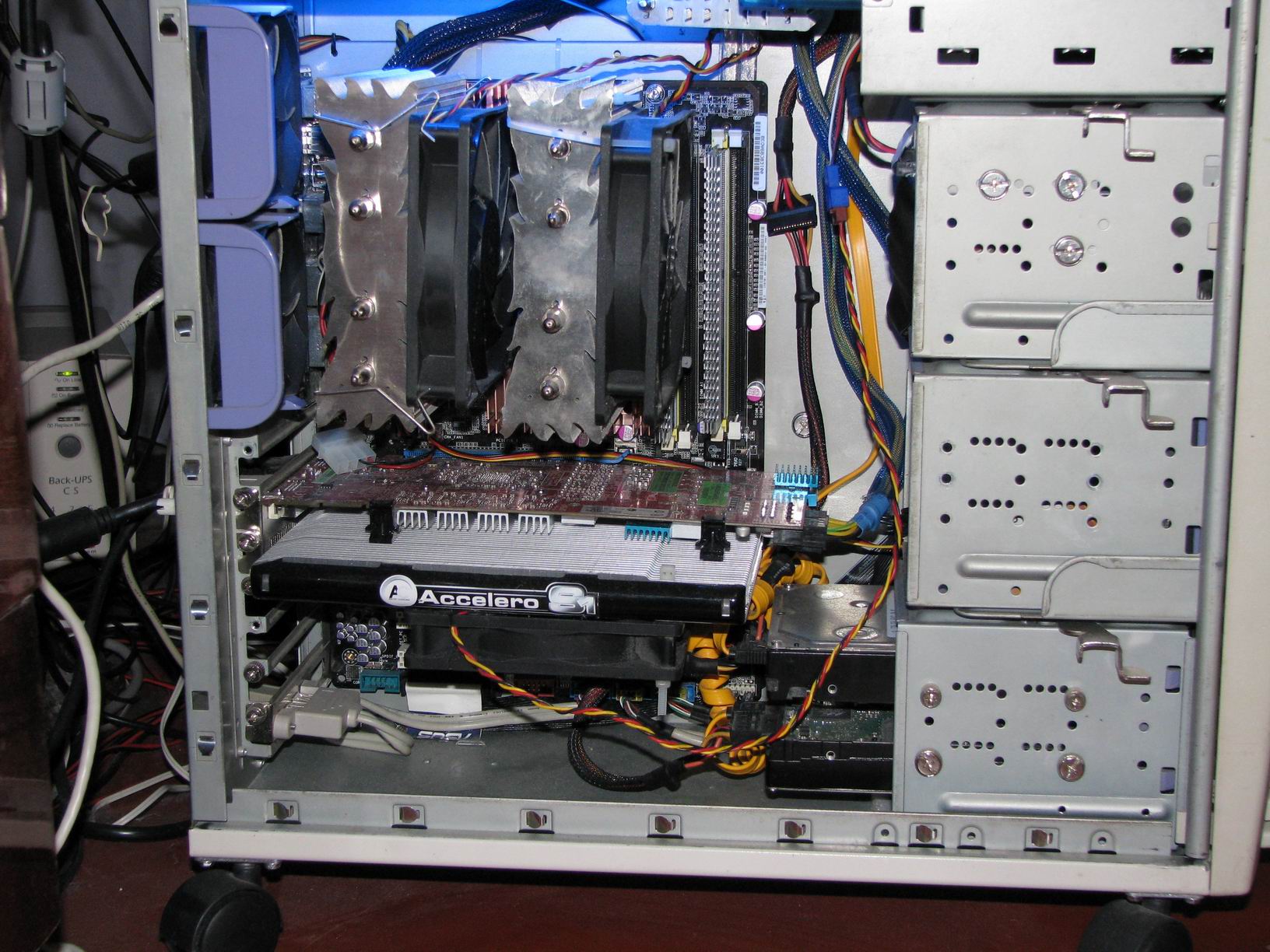 внутри: Очередной апгрейд, давнишний правда... Intel Core i7 -2600K, +Thermalright IFX 14 + 2шт. Thermalright X-Silent140 ASUS iP67 P8P67 EVO (REV 3.0) DDR III 16GB DDR III 4096MB PC3-10600 Kingston (1333MHz) KVR1333D3N9/4G (1600-8-8-8-20 1,5V) ATI Radeon HD 5850 1Gb HIS referens 875/1250 Crucial M4 (CT256M4SSD2) 256GB Intel X25-M SATA SSD (SSDSA2MH080G2R5) 80 GB (Перехал в ноутбук) SAMSUNG HD204UI- 2000 GB SAMSUNG HD204UI- 2000 GB HL-DT-ST DVDRAM GH20NS15 Zalman ZM850-HP850W корпус Thermaltake Mozart Zalman FanMate ZM-MFC1 Монитор 1- Dell UltraSharp U2711 (2560x1440) [27" LCD] Монитор 2- Samsung UE-55D7000 (1920x1080) [55" LCD] Logitech G9 Laser Mouse поверхность Raser eXactMat X Logitech Illuminated keyboard Вебкамера Logitech HD C910 https://ergotron.com/Products/tabid/...U/default.aspx https://ergotron.com/Portals/0/image...79-194_mot.gif Apple MacBook Pro 15" Intel Core 2 Duo T9600/ 4096MB/ 500GB/ 15.4" WXGA+ (1440x900), NVIDIA GeForce 9600M GT 512Мб, Mac OS X 10.6 Snow Leopard. Apple iPhone 4 16Gb/Neverlock/5.1.1 Apple iPad 32Gb 3G/ 5.1.1 Ресивер: Marantz SR-4600 Фронт: Mordaunt-Short Avant 906i Центр: Mordaunt-Short Avant 905 Тыл: Mordaunt-Short Avant 902i Саб: Mordaunt-Short Avant 909 Пульт: Logitech Harmony 555 Страдали, давно правда, Старая версия: Intel Core i5 -760,@ 4200 MHz +Thermalright IFX 14 + 2шт. Thermalright X-Silent140 GigaByte GA-P55-UD5 DDR III 8192MB DDR III 4096MB PC3-12800 Kingston Hyper X low voltage XMP KHX1600C9D3LK2/4GX (1600-7-8-7-20 1,5V) ATI Radeon HD 5850 1Gb HIS referens 875/1250 Intel X25-M SATA SSD (SSDSA2MH080G2R5) 80 GB SAMSUNG HD103SJ- 1000 GB SAMSUNG HD103UJ- 1000 GB SAMSUNG HD103UJ- 1000 GB HL-DT-ST DVDRAM GH20NS15 Zalman ZM850-HP850W корпус Thermaltake Mozart Zalman FanMate ZM-MFC1 Монитор 1- Dell UltraSharp 2408WFP (1920x1200) [24" LCD] Монитор 2- Samsung LE40M87BDX (1920x1080) [40" LCD] ![]() ![]() снялось и стало так... ![]()