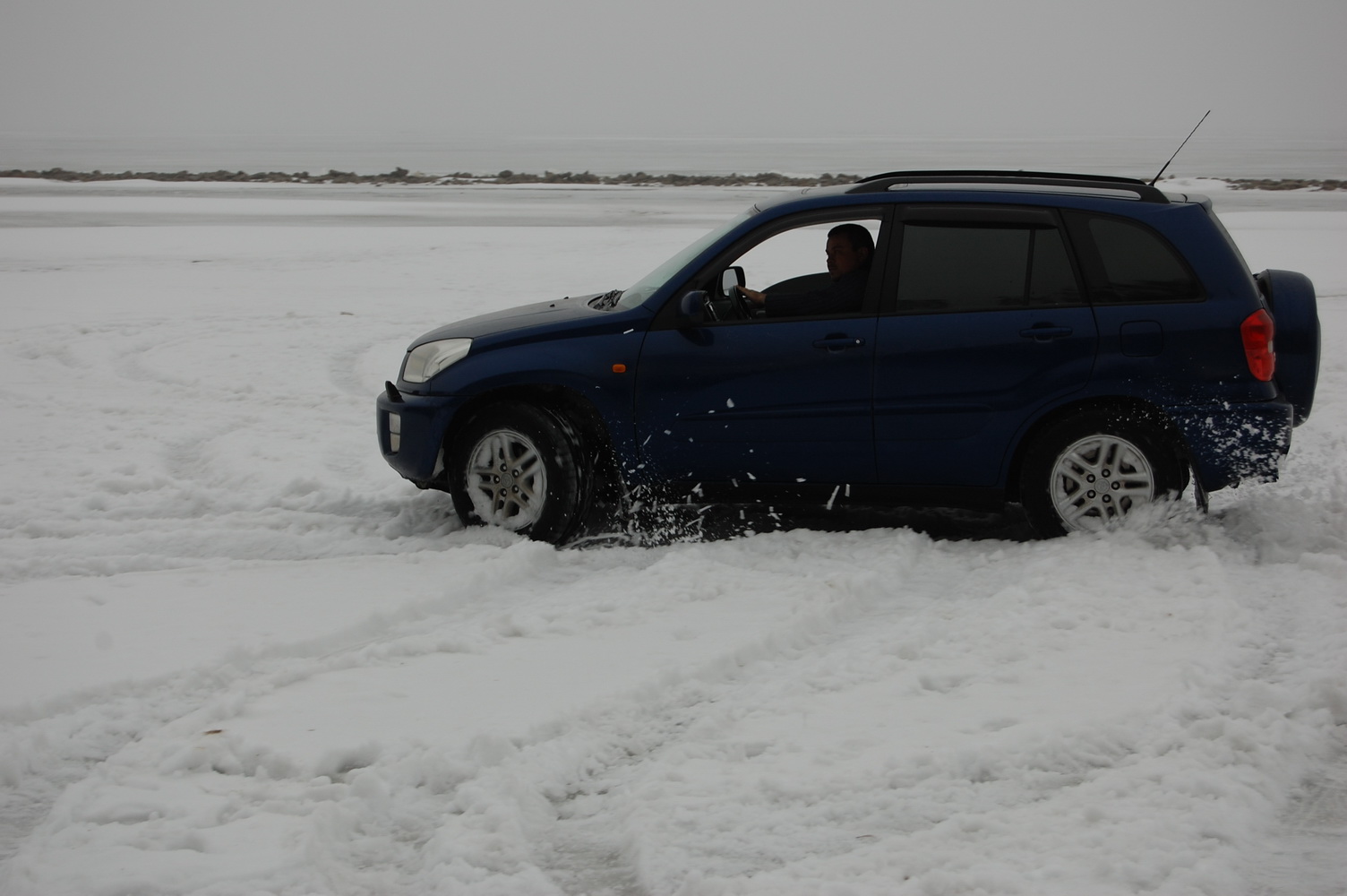 жалко что было много рыхлого снега, и машина не сильно скользила, но удовольствия было.