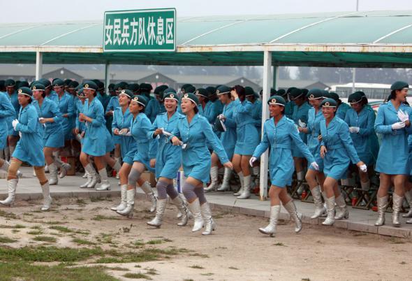 Одна из женщин-пилотов истребителей первого класса готовится сесть за штурвал своего самолета во время испытания нового оборудования, сделанного специально для женщин, на военной базе народно-освободительной армии в Пекние 30 августа 2009 года. Пилоты дебютируют на параде в день праздника. Китай может отправить в космос свою первую женщину уже в 2012 году, и кандидатка будет выбрана из этой группы.