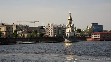 Туристы и молодожены ежедневно приходят на набережную Днепра, чтобы побывать в первом в Европе 37-метровом храме на воде. Церковь в честь Святого Николая соорудили недалеко от Киевского речного вокзала. С берегом ее соединяет мост длиной 12 метров. Он как будто связывает два мира: физический с его проблемами и духовный.