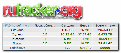Вот тебе скрин статистики моего uTorrent на сервере (24/7):