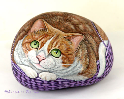 ![]() Автор этих замечательных работ — итальянка Ernestina Gallina. Она открыла для себя новый, захватывающий мир, в котором смогла объединить свою любовь и к живописи и к животным и работает акриловой краской по камню с 1996. Ее картины — продукт ее творческого воображения, объединенного с вдохновением от естественной формы камня. Обучает этому непростому искусству взрослых и детей, а в 2006 она основала итальянский клуб росписи камней (Rock Painting Club Italia on Yahoo Groups). Ее работы красуются во многих частных коллекциях и на выставках. (полный архив в моей шаре - папка - живопись - Живопись на камне от Ernestina Gallina) |