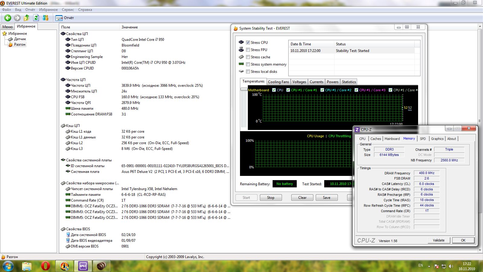 2x2Gb OCZ DDR3 7-7-7-16 {не нашел - показатели взяты с CPU-Z}