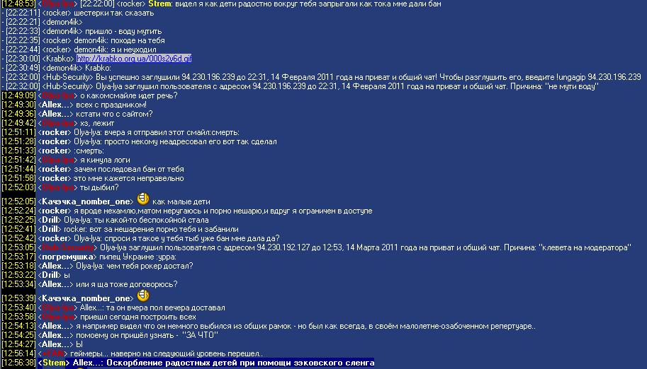 Битый час тролль затрагивал различные темы, последнняя была компьютерные игрушки, с уклоном на то что тот кто не играет - просто имеет слабую машину\ничего не понимает в играх и т.д. Упорный прессинг причем, без реакции на просьбы попуститься и забить на эту тему - выдаю только концовку, в итоге нашел в правилах подходящее, по реакции в чате видно - КАК он всех достал. Заметьете - есть признание смайлом в троллизме