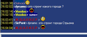 [16:06:51 ] <Voodoo> Bad-lady: як втанкі, сидим, думаєм із якого города цей стронг