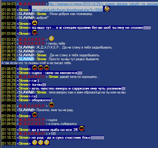 [20:25:10] <HoldenKolf> :превед: [20:31:34] <Ж.Д.А.Л.К.Е.Р.> ку [20:33:49] <HoldenKolf> Киев? [20:35:31] <Strem> йа йа [20:36:20] <HoldenKolf> хух, славяне [20:36:34] <Strem>