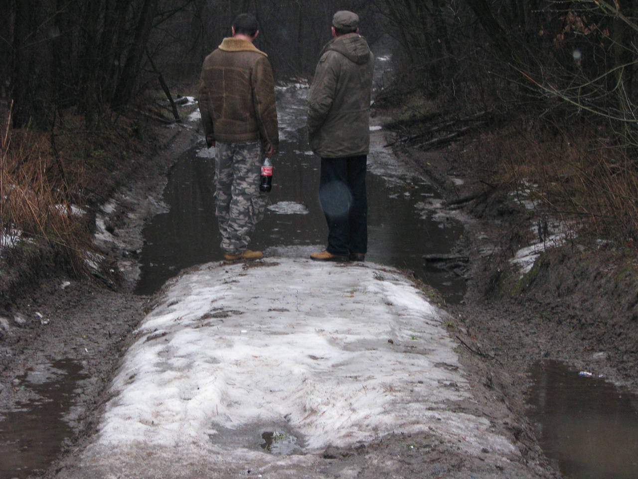 Могу взять одного двух человек.Со Стасевичем и Тасей, были на разведке, а так как являюсь практически аборигеном в тех местах, смею заверить что дорога там именно обманчива. Танки там ездили недавно, примерно неделю назад, причём на первых фото явно видно что танки шли на брюхе, соответственно глубина колеи - 40-50см. местами больше, ширина гусенечного следа - минимум 50, обычно 60-70-80 см.