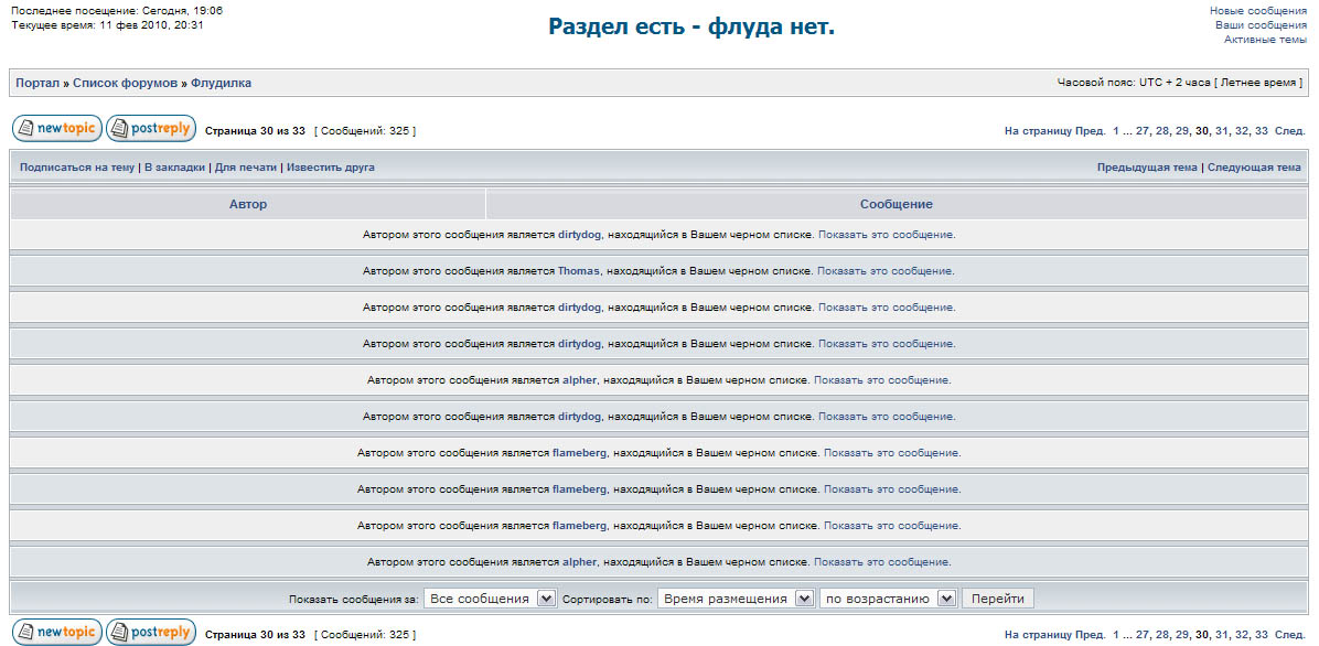 Кстати, давно хотел написать - насчет раздела "Флуд" там все просто - поставлено раз в неделю его тупо очищать = темы там не живут.