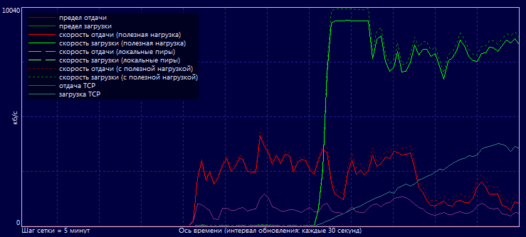 Сегодня раздал 120 гиг за ночь, после включения фуллспид планирую раздавать 0,5ТБ в сутки )))