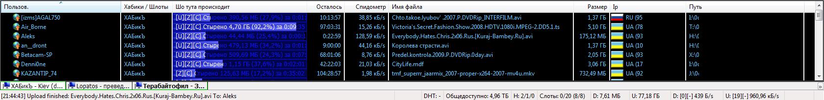 StrongDC_installer.exe 8,51 МБ (8 924 935 байт) MD5: 46DA59C02D63791896AE2A1267E53E1E Зеркала: UPLOAD.EE Zippyshare Ftp Чтоб добавить StrongDC в автозагрузку нужно: Скопировать ярлык StrongDC в Пуск - Все Программы - Автозагрузка. В самой программе нажать Файл - Настройки - Дополнительно - Сворачивать при запуске програмы. Чтоб не запрашивало пароль пользователя при каждом запуске нажмите Ctrl + F - выбрать Хабикъ - Свойства - ввести пароль. Как правильно обновить Strong DC++ Если честно - при малой шаре, просто с нуля поставьте да и не геморройтесь, но при большой - читаем дальше. Закройте старый клиент, завершив закачки, переместите его папку кудынить - чтоб поместить на его место новую. (Или новый клиент на другой жесткий диск) Весьма советую сделать бекап старого - случаи они разные бывают.. Для начала самое простое - если Вы делали индивидуальные настройки стиля/вида и не хотите их терять: В СТАРОМ клиенте: Настройки - Вид/Цвета и шрифты - тыкаем Export theme и сохраняем денить, потом уже в НОВОМ Import theme, находим де сохранили - и вуаля - привычный вид. Сохранение шары - а вот это важно - читаем внимательно!! Переносим из папки Settings СТАРОГО клиента в такую же НОВОГО два файла: HashData.dat, HashIndex.xml. Далее открываем там же БЛОКНОТОМ DCPlusPlus.xml, копируем в самом низу текст после тэга <Share> - и аналогично вставляем текст в такой же файл в новом (после такого же тэга - вместо того что там!) - это Ваши папки для расшаривания собссно. Вот теперь все - после запуска хаб может сразу не воспринять шару - обновите несколько раз (ctrl+e) Сохранение списка основных хабов - просто переместить из той же папки Settings файл Favorites.xml Сохранение личек - перенести папку PM - в оригинальной сборке замечен баг - сохраняло без имени юзера, мы поправили (25.01) - кто закачал раньше отсюда (или с оф. сайта) - Настройки - Дополнительно - Логи (выбрать лички) и в графу Имя файла вставить вот это PM\%[userNI].%[userCID].log - обеспечит совместимость со старыми файлами личек - заодно и поиск переписки вручную. Всё - это таки правильное обновление, а не просто замена exe файла. Запускаем клиент и гордимся собой!)) Последний раз редактировалось Ж.Д.А.Л.К.Е.Р.; 01.12.2017 в 01:12. |