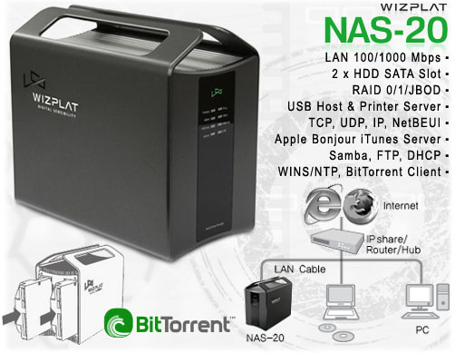 Вслед за LG и Thecus компания Sarotech также подготовила сетевое хранилище информации (NAS) WizPlat NAS-20, ориентированное на домашнее применение.