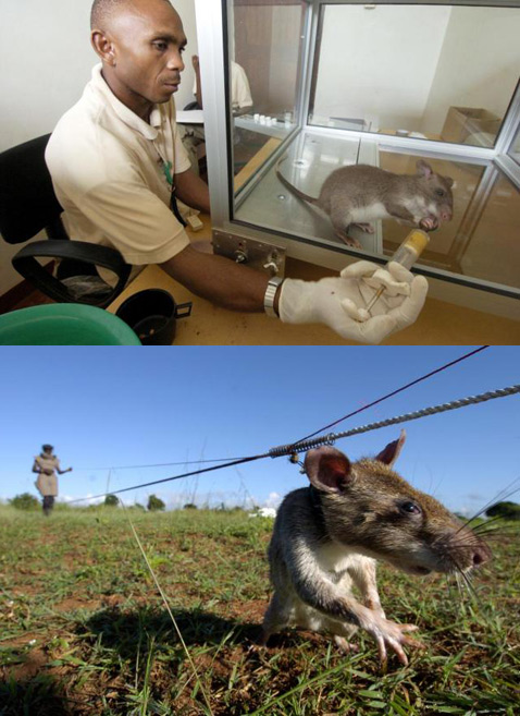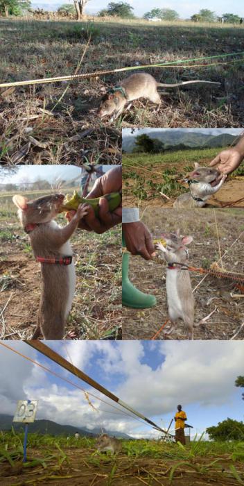 ![]() Гигантские крысы находят мины по запаху Им дают имена, их обучают и проверяют на экзаменах, а потом гордятся ими, фотографируют для "доски почёта", устраивают комфортные условия проживания. И есть за что: они спасают множество жизней, быстро и эффективно обнаруживая мины и другие неразорвавшиеся боеприпасы, скрытые под землёй. Они – наши нынешние герои — это гигантские крысы. Гигантские сумчатые крысы. Совсем не сумчатые и почти не крысы. О том, что крысы способны вынюхивать мины, а ещё — туберкулёз у человека, писалось ещё в 2003 году. Однако этот многолетний проект в то время находился только в начале своего практического воплощения, переходил от ранних экспериментов к работе в поле. Теперь же стоит рассказать и об истории, и о нынешнем состоянии сей удивительной затеи. Столь необычным делом занимаются бельгийская некоммерческая организация APOPO и её дочерний проект "Крыса-герой" (HeroRAT). Основал APOPO в 1998 году Барт Уитдженс (Bart Weetjens), впечатлённый ужасающей статистикой смертей от мин, доставшихся многим странам в наследство от вооружённых конфликтов конца века. В развивающихся странах Африки, к примеру, специалистов по разминированию должного уровня не так уж много, а время их стоит достаточно дорого. Применение же, допустим, тренированных собак — тоже дорогое удовольствие, если обследовать нужно не аэропорты или магазины, а огромные открытые территории. Тут-то Уитдженс вспомнил про способности крыс. В детстве он держал грызунов в качестве домашних животных и успел попросту полюбить их. Крысы сообразительны, отлично чуют запахи и в качестве "массовой" армии сапёров могут обойтись совсем недорого. Свою работу в Африке Уитдженс начал ещё до проекта HeroRAT: Барт помогал в поставках африканцам протезов ног. Тогда-то он и узнал, сколь велики масштабы бедствия: примерно каждые 20 минут где-то в Африке человек подрывается на мине. Бельгиец понял, что при таком размахе заминированных полей на всех не напасёшься ни собак-ищеек, ни металлоискателей, к тому же некоторые мины – пластмассовые (фото HeroRAT). Поиск по научным публикациям подтвердил догадки бельгийца: ещё в 1970-х американские учёные установили, что лабораторные крысы способны различить запах взрывчатых веществ. Но каких-то особых последствий это открытие не возымело. Потому Барт решил начать собственные опыты. В подборе кандидатов на лучших искателей мин и в натурных экспериментах Барту помогали биологи из университета Антверпена, сыгравшие большую роль и в организации всего проекта. В результате на роль сапёров определили гигантских африканских (гамбийских) сумчатых крыс (Cricetomys gambianus). Эпитет "сумчатые" этот вид получил из-за больших защёчных мешков, как у хомяков. Также стоит сказать, что гамбийские крысы не являются подлинными крысами – африканские грызуны их достаточно дальние родственники. После первых экспериментов в Бельгии, подтвердивших работоспособность идеи Барта, в 2000 году проект перебрался в Танзанию, в Морогоро (Morogoro), под крыло местного агропромышленного университета (Sokoine University of Agriculture), чьи специалисты взялись помогать "десанту" из Европы. Именно тут открылась "крысиная школа". В неё зверьки поступают в возрасте пяти недель, когда их забирают у матери. Тут грызунов начинают знакомить с большим внешним миром: они привыкают к громким звукам техники, бегают по мокро