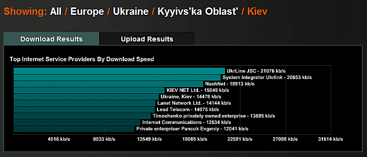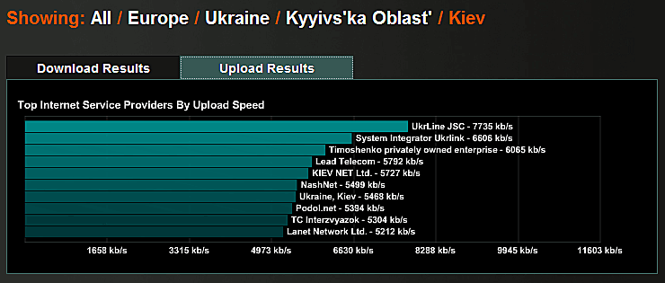 KievNet Download Results - 4-е место. Upload Results - 5-е место.