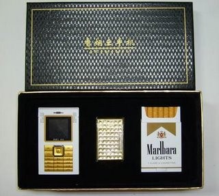 предусматривает съемный блок, где действительно можно хранить сигареты (7 штук). Marlbara поставляется в большой коробке, в комплект входят зажигалка и сигареты. Не известно, попадет ли когда-нибудь этот телефон для курильщиков за пределы китайского рынка.