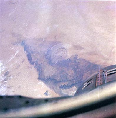 Структура Ришат, расположенная в пустыне Сахара на территории Мавритании, хорошо заметна из космоса благодаря своим огромным размерам - ее поперечник составляет почти 50 километров. А почти идеально круглая форма этого образования до сих пор заставляет спорить учёных что это – кратер от удара метеорита, жерло потухшего вулкана или… место высадки инопланетян… |