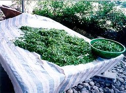 2. Основная цель этапа завяливания — обезвоживание чайного листа. В процессе завяливания лист теряет до 55% влаги. Подвяливают чайные листья обычно в тени, в хорошо проветриваемом помещении (или под навесами), но некоторые сорта провяливают и на солнце. Завяливание чая может быть естественным, и тогда оно длится от 10 до 24 часов, либо искусственным, и тогда в специальных сушилках время завяливания сокращается в 3-5 раз по сравнению со стандартным. Время завяливания во многом зависит от окружающих условий (влажность воздуха, температура, ветер и др.) и от сорта, который мы хотим получить.