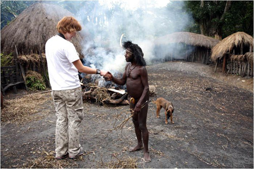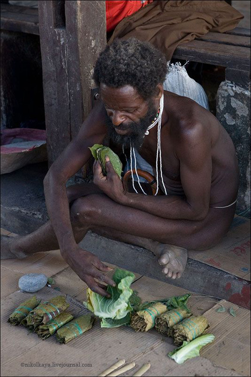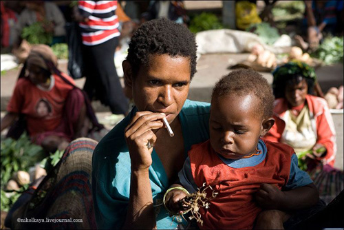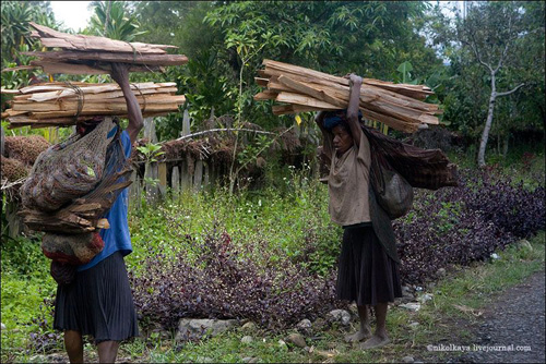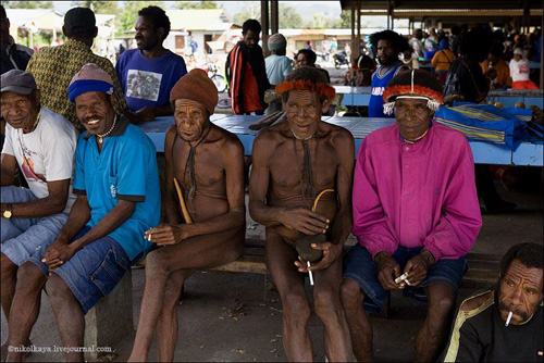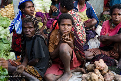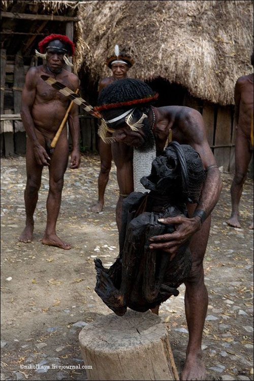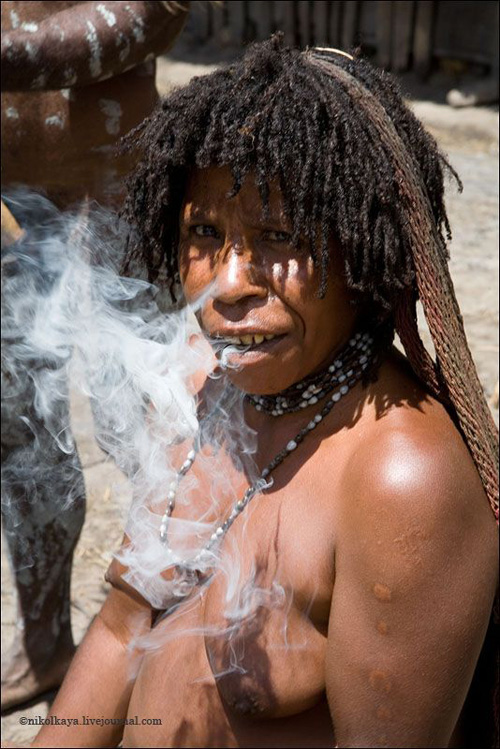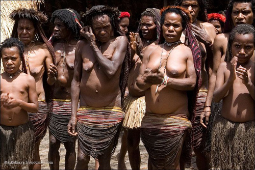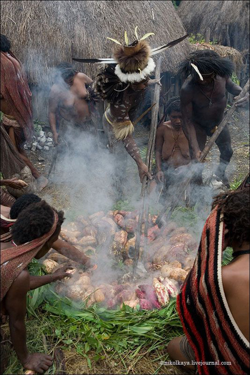 Племена Дани живут большими семьями общим двором по 30-50 человек. Женская половина вместе с кухней и свинарником, но отдельно от мужского дома, куда нас не пустили. Есть специальный дом для ночных свиданий супругов, по очереди. У Дани может быть несколько жен. Одна жена стоит 4-5 свиней. У главы семьи, где были мы (на фото) - 4 жены, 8 детей (4 сына, двое из них женаты и имеют по 2 жены). Свинья стоит очень дорого. Маленький поросенок - 100 долларов, большая свинья - до 3 тысяч. К примеру, огромная корова стоит всего 300 долларов.