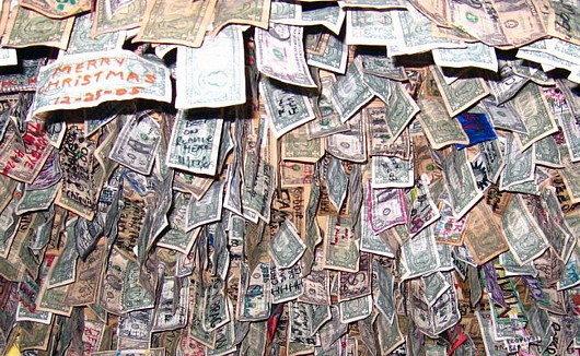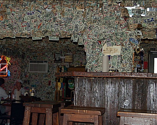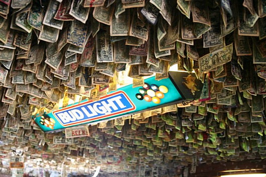Известный в США «No Name Pub», был основан в 1931 году, и только в 70-80 годах какие-то шутники-посетители стали приклеивать первые однодолларовые банкноты на его стены — одну за одной.