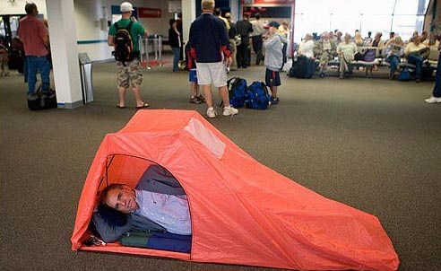![]() Mini Motel способен на время обеспечить путешественнику, застрявшему в аэропорту, комнату отдыха и домашнюю кровать. Ведь несмотря на то, что человек ко всему способен привыкнуть, хочется, чтобы комфортно было везде. Что из себя представляет этот девайс? Эдакий "микс" одноместной палатки и спального мешка, состоящий из каркаса и тента. Вход закрывается на "молнию", внутри - сопутствующие "товары", прилагающиеся к "мини-мотелю" в комплекте: надувной матрас, подушка, постельное белье, будильник, фонарик, затычки для ушей, повязка на глаза и средства гигиены. В результате получается компактный домик, длиной 2 метра, шириной 63 см и высотой 89 см. и весом чуть больше двух килограмм. сайт: minimotel.net