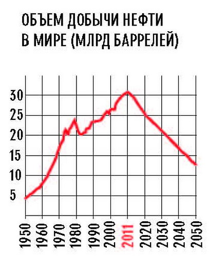 В 1956 году американский геолог Кинг Хабберт заметил, что добычу нефти в заданном регионе можно предсказать на основе графика разведки месторождений. Пик добычи наступает через некоторое время после пика разведки, причем этот временной интервал можно рассчитать на основе математической модели, которую назвали «кривой Хабберта». Хабберт правильно предсказал, что добыча нефти в США достигнет пика в 1970 году, через 12 лет после пика разведки в 1958 году. Также Хабберт предсказал, что добыча нефти во всем мире достигнет пика в 2000 году. Но тут он ошибся, возможно, изза последствий нефтяного эмбарго ОПЕК в 1973 и 1979 годах. Сегодня эксперты называют другую дату: 2011 год.
